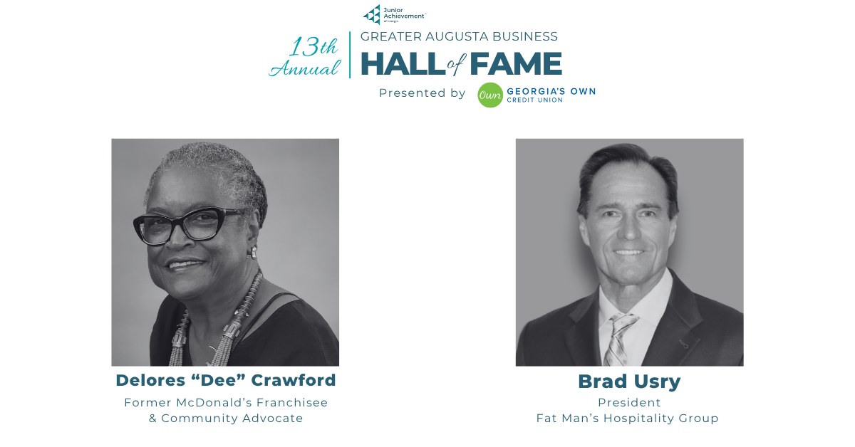 Augusta, GA — Junior Achievement of Georgia (JA of Georgia) has named Delores “Dee” Crawford, Former McDonald’s franchisee and Community Advocate, and Brad Usry, President of Fat Man’s Hospitality Group, as their 2026 JA Greater Augusta Business Hall of Fame Laureates.